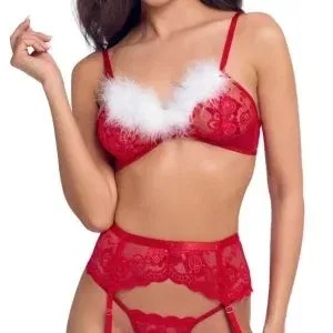 Obsessive Weihnachts-Dessous-Set “Kissmas” – Rot-Weiß – Größe S/M/L/XL