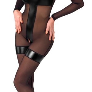 Noir Schwarzer Langarm-Body ouvert – Geheimnisvolle Transparenz – Größe S/M, Farbe Schwarz