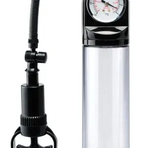 Pump Worx Accu-Meter Power Pump – Transparente Penispumpe mit Manometer Transparent/Schwarz