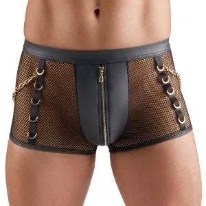 Svenjoyment Herren Netz-Pants Wetlook Schwarz L mit Goldringen & Karabinerketten