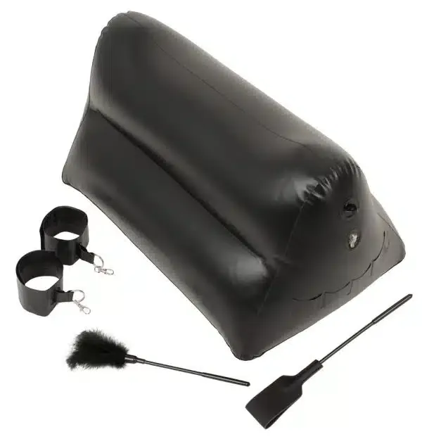 Das Love Cushion Portable Triangle von You2Toys ist das perfekte Liebeskissen, um Ihre intimen Momente auf ein neues Level zu bringen. Hergestellt aus hochwertigem PVC und Metall, bietet dieses schwarze Liebeskissen eine robuste und langlebige Konstruktion. Ein Highlight dieses Kissens ist seine aufblasbare Funktion, die es Ihnen ermöglicht, die Härte und Höhe des Kissens nach Ihren Wünschen anzupassen. Egal, ob Sie es lieber weicher oder fester mögen, dieses Kissen bietet Ihnen die perfekte Unterstützung für Ihre Liebesabenteuer. Das Love Cushion Portable Triangle wird mit einigen aufregenden Accessoires geliefert, die Ihre Fantasien zum Leben erwecken. Es enthält Handschellen, ein Paddel und einen Federstab, um Ihnen und Ihrem Partner unvergessliche BDSM-Erlebnisse zu ermöglichen. Lassen Sie Ihrer Kreativität freien Lauf und entdecken Sie neue aufregende Möglichkeiten. Für den Fall, dass das Kissen versehentlich beschädigt wird, ist ein Reparatur-Kit im Lieferumfang enthalten. So können Sie sicherstellen, dass Sie Ihr Liebeskissen immer in bestem Zustand halten können, um jederzeit bereit für sinnliche Abenteuer zu sein. Das Love Cushion Portable Triangle ist nicht nur ein funktionales Liebeskissen, sondern auch ein stilvolles Accessoire für Ihr Schlafzimmer. Das elegante schwarze Design verleiht Ihrem Raum eine sinnliche Atmosphäre und lässt das Kissen diskret aussehen, wenn es nicht in Gebrauch ist. Mit seinen vielseitigen Einsatzmöglichkeiten ist das Love Cushion Portable Triangle ein Must-Have für Paare, die ihre Intimität aufregender gestalten möchten. Egal, ob Sie neue Positionen ausprobieren, Ihre Fantasien erkunden oder einfach nur mehr Komfort während des Liebesspiels genießen möchten, dieses Liebeskissen bietet Ihnen alles, was Sie brauchen. Entdecken Sie die aufregende Welt der Lust und Leidenschaft mit dem Love Cushion Portable Triangle von You2Toys. Lassen Sie Ihre Fantasien wahr werden und erleben Sie unvergessliche Momente der Intimität. Bestellen Sie jetzt und lassen Sie sich von diesem einzigartigen Liebeskissen verführen.Highlights: